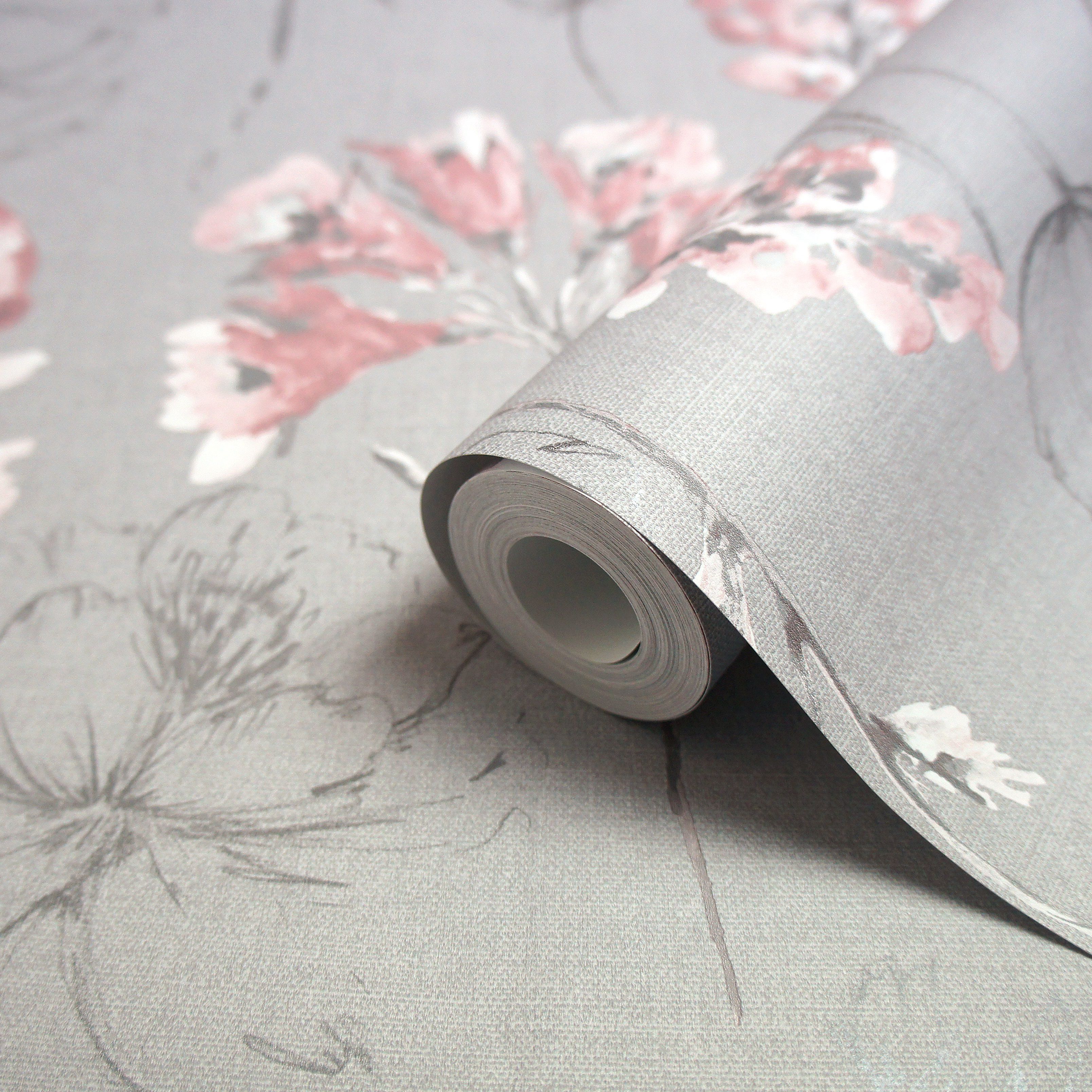 Holden Grey Pink Floral Smooth Wallpaper Departments Diy At B Q