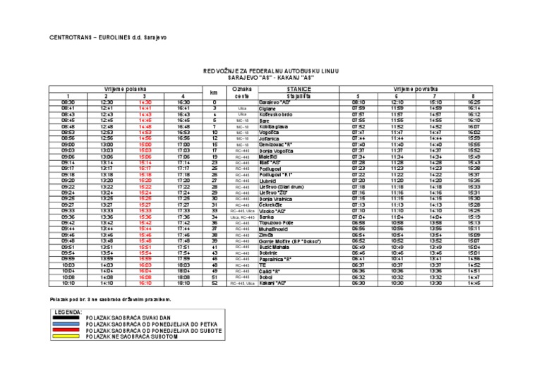 Centrotrans Sarajevo Red Voznje