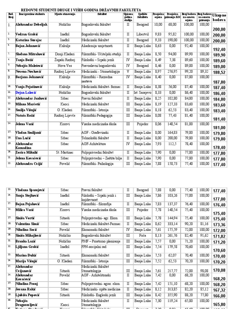 Rang Lista Za Dodjelu Kredita Redovnim Studentima Dodiplomskog