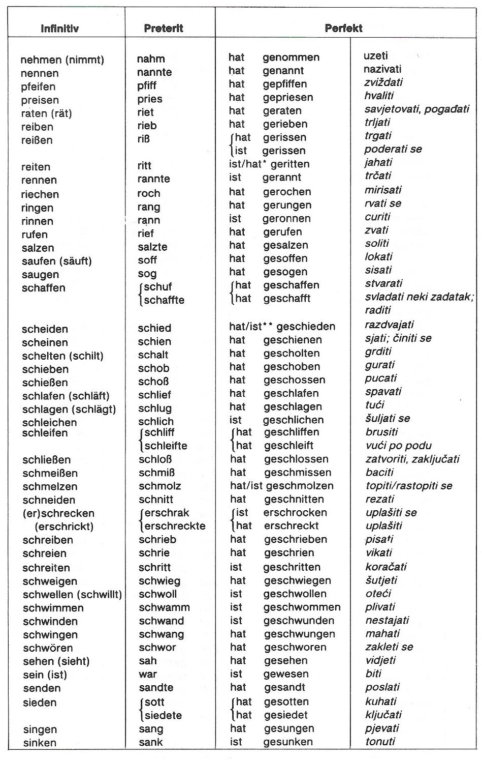 Lista Nepravilnih Jakih Glagola Nemacki 3 Deo Njemacki Jezik