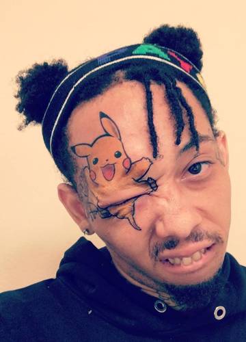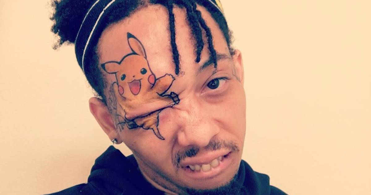 A dallas texas rapper is going viral today because he got a facial tattoo of the popular pokémon character pikachu. It certainly takes guts to decide to get anything permanently added to your face. And the reviews on the tattoo are mixed to say the least. One tattoo enthusiast with an unfortunate low quality pikachu tattoo just got a cute and clever cover up thanks to lindsay baker a talented tattoo artist at niteowl tattoo in massachusetts.