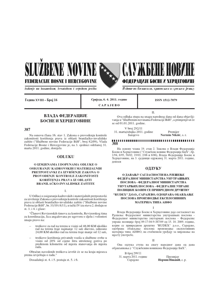 Sluzbene Novine Federacije Bih Broj 33 16