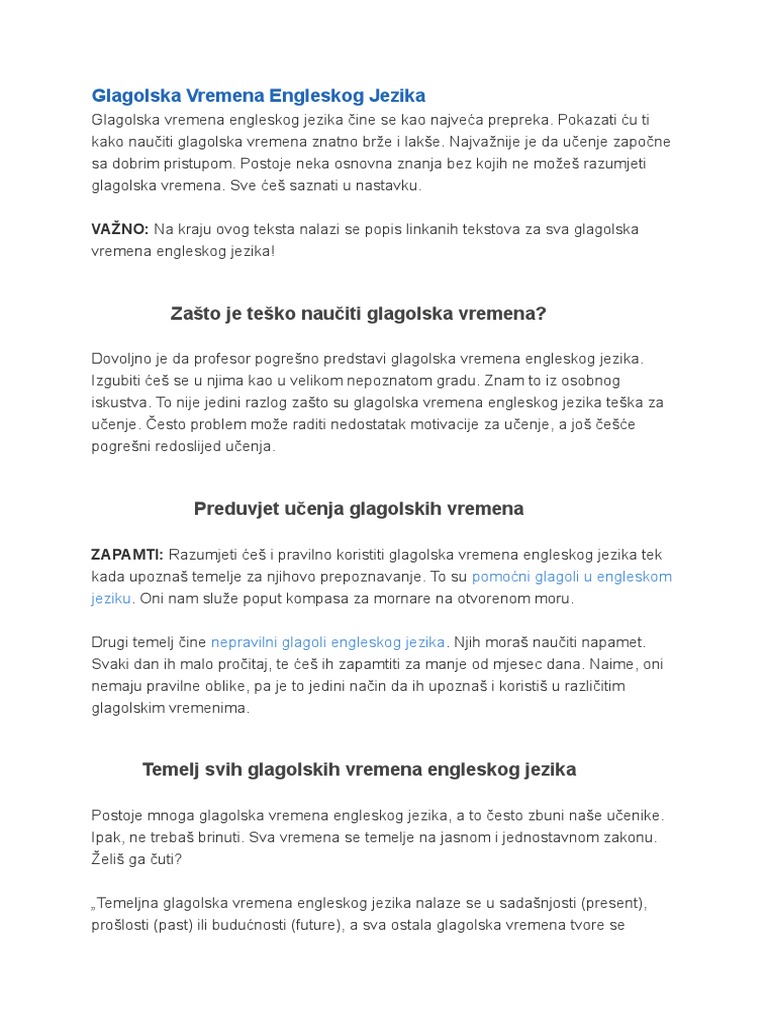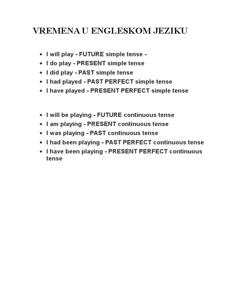 Osnovna Vremena U Engleskom Jeziku Pdf